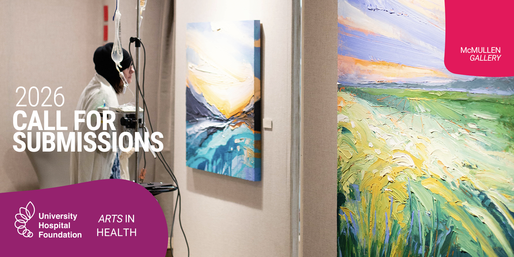 The University Hospital Foundation was created in 1962 and has become one of Canada's leading hospital fundraising organizations. With our 2023 rebrand and acquisition of The Friends of University Hospitals, UHF funds McMullen Gallery and drives Thought Leadership in Arts in Health with a portfolio that currently includes the UAH Art Collection, the Artists on the Wards programs, and of course, McMullen Gallery.