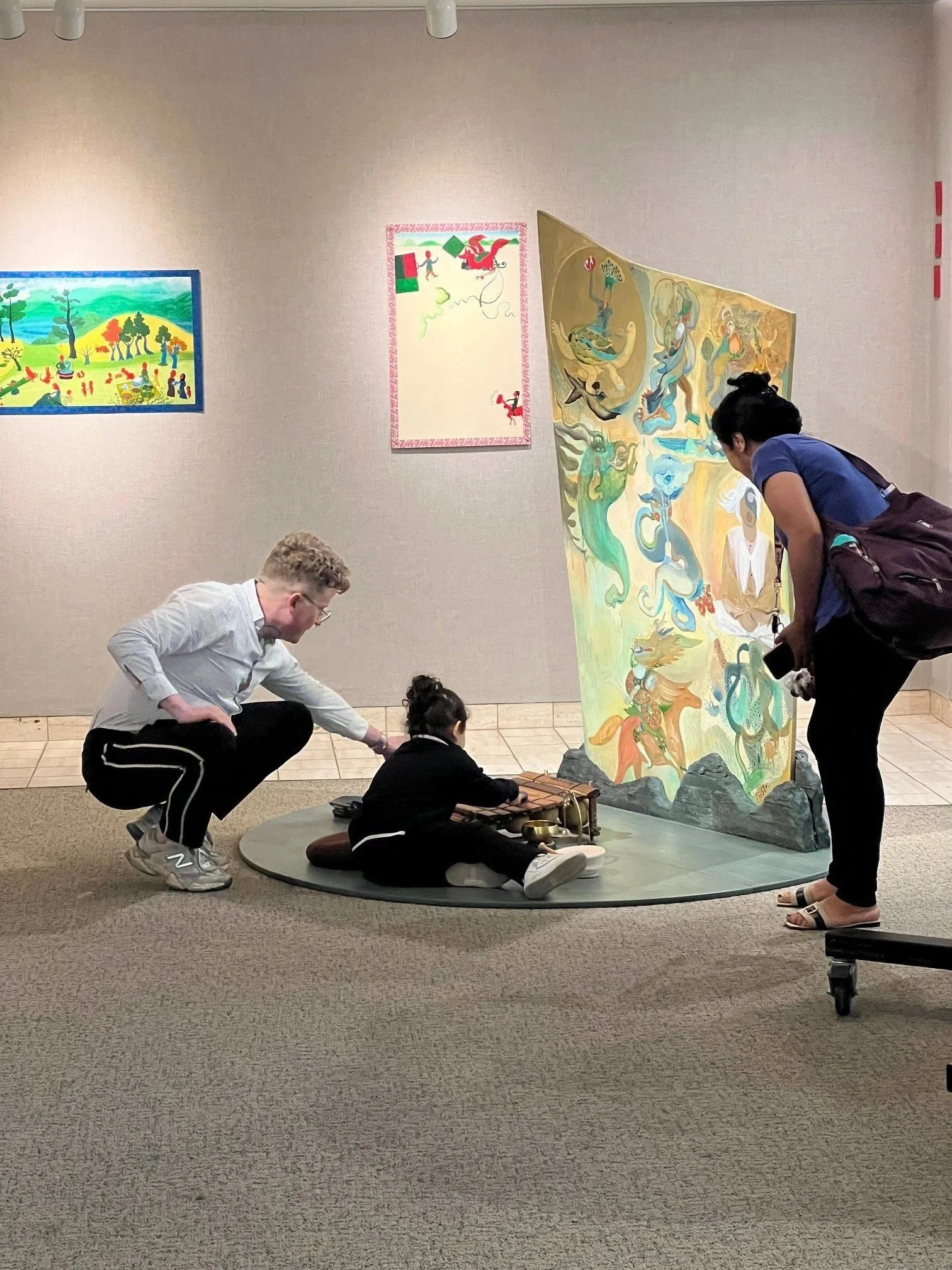 A young hospital visitor interacts with the installation of Cui Jinzhe’s 2025 exhibition Om Ah Home